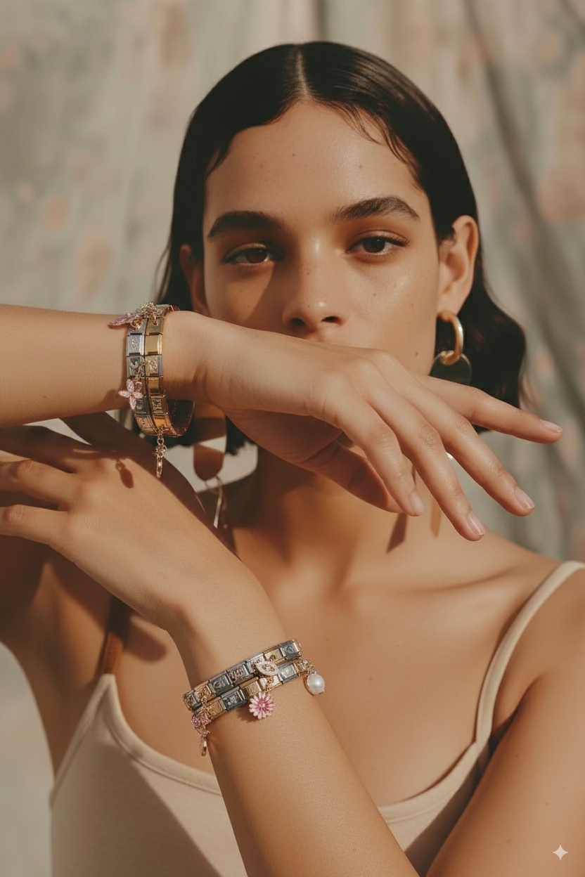 Discover gold‑tone Italian charm links to elevate your bracelet. Hypoallergenic stainless steel....