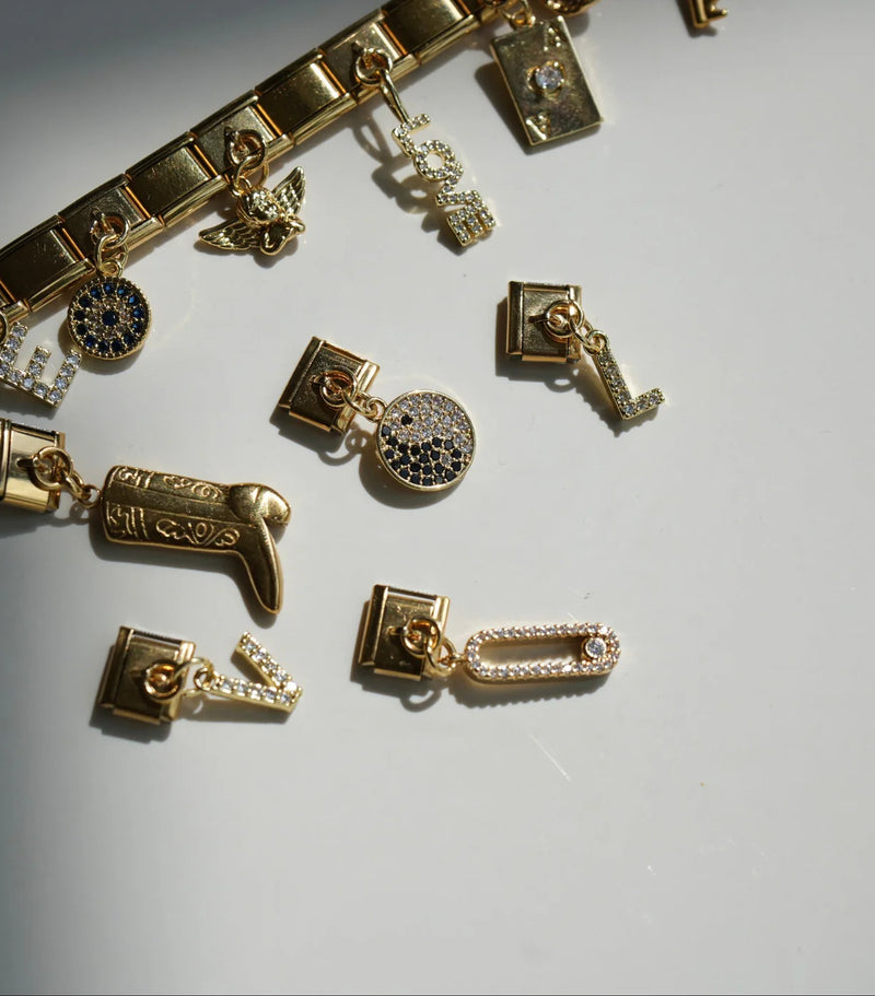 Discover gold‑tone Italian charm links to elevate your bracelet. Hypoallergenic stainless steel....